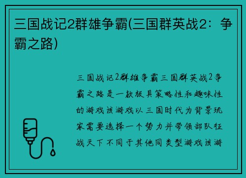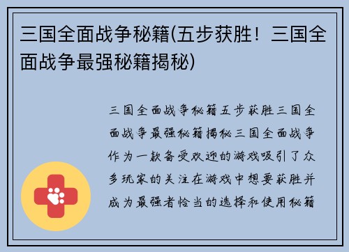 三国志战略版武将搭配(最强三国志武将组合攻略)在三国志战略版游戏中,选择合适的武将搭配是制胜的关键。在不同的战斗模式和场景中,需要不同的武将组合。以下是最强的三国志武将组合攻略,相信可以帮助你在游戏中...